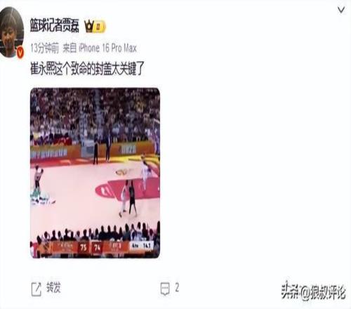 本场比赛的第四节,崔永熙成为外界的关注的焦点,宁波外援杰克逊在他头上命中不讲理的三分强行续命,这让不少广东球迷想起了被绝杀痛苦时刻。
