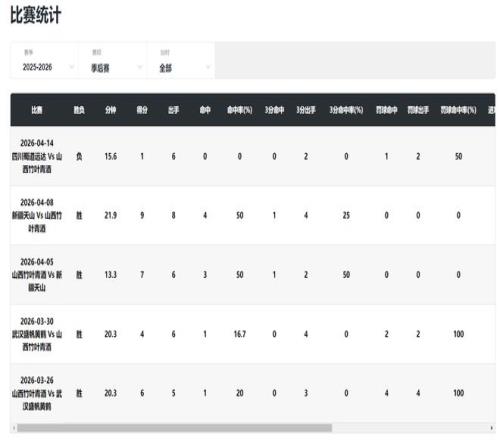 陈玉婕身高1.78米,她在进入季后赛后的表现一言难尽,1分、9分、7分、4分、6分。场均18.3分钟,拿到5.4分2助攻2.2篮板0.8抢断,命中率29%,三分命中率13.3%,表现可以说是拉胯至极。