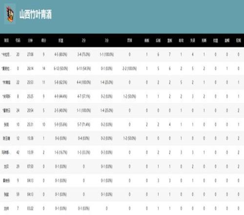 山西女篮的国字号球员们:翟若云5分,陈玉婕1分,张茹10分,要知道陈玉婕作为宫鲁鸣的爱将,这场比赛16分钟,6中0+三分2中0,拿到1分1助攻0篮板2犯规,命中率0%。