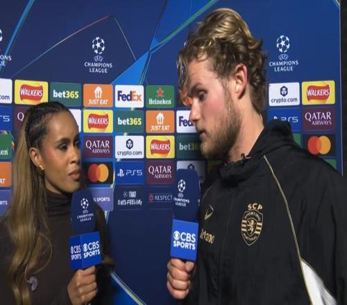 欧冠1/4决赛次回合,葡萄牙体育客场0-0战平阿森纳,总比分0-1遭淘汰,赛后,葡萄牙体育中场莫滕-尤尔曼德接受了CBS体育的采访。