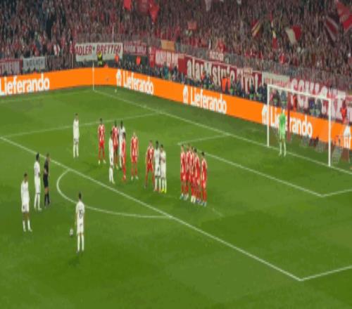 皇家马德里在欧冠最近三粒直接任意球进球:
