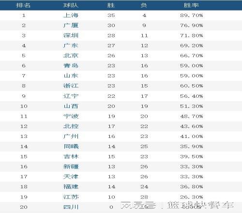 附:CBA积分榜最新排名