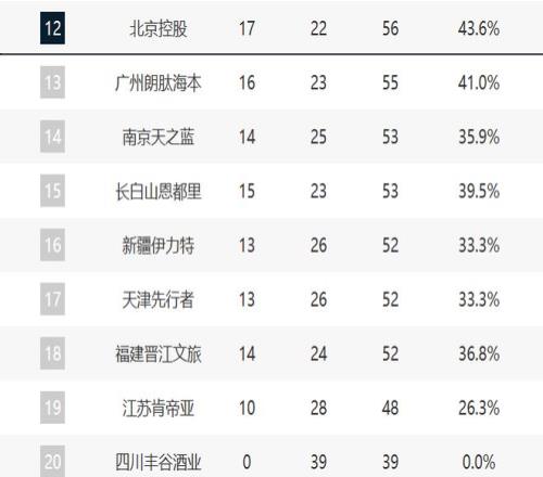 CBA最新排名!前5基本确定,辽宁紧咬第8名,北控锁12,6队被淘汰