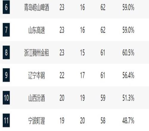 至于6-8分别是青岛、山东和浙江。而这轮浙江对阵的是吉林,如果他们取胜的话,那么他们领先青岛与山东1个胜场,排在第6,这场比赛正常打他们还是有希望取胜的。至于青岛和山东他们都输球了,特别是山东后续三场都是强队,他们的排名可能会继续下滑。