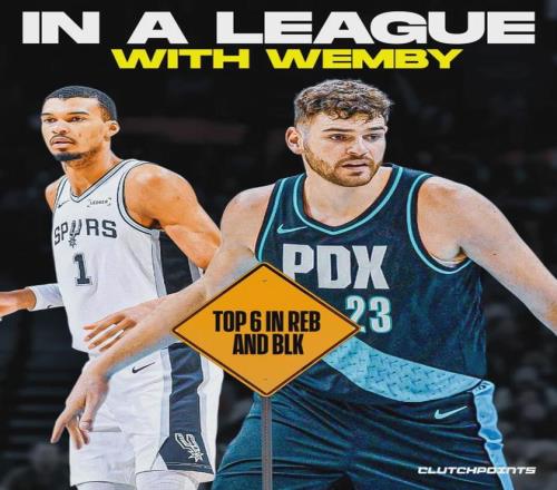 本赛季马刺和开拓者交手3次,马刺2胜1负。但是,这3场比赛,文班亚马都没有参加。文班亚马生涯至今跟开拓者交手5次,场均能砍下24.6分8篮板4.8盖帽!自克林根2024年进入NBA之后,他跟文班同场较量的时间只有21分钟。