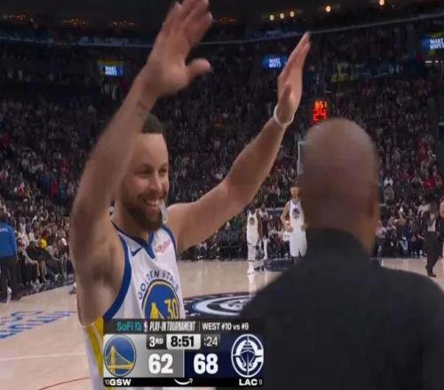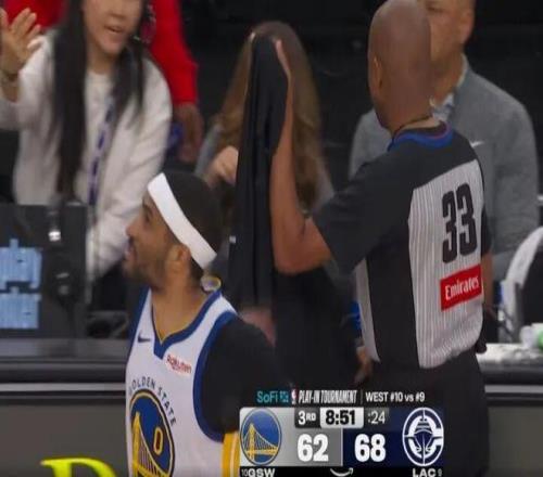 库里之后高举双手笑迎替补裁判肖恩-科宾脱衣服替补出战