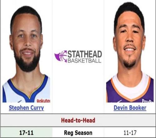 据统计,库里生涯面对布克17胜11负,场均26.4分5.5篮板5.6助攻1.1抢断,布克场均24.1分3.3篮板5.6助攻1.2抢断。