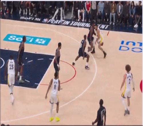 看这球,格林为库里冲锋突破保驾护航,掩护发力撞倒小琼斯,库里顺势小打大,中投拿下2分。