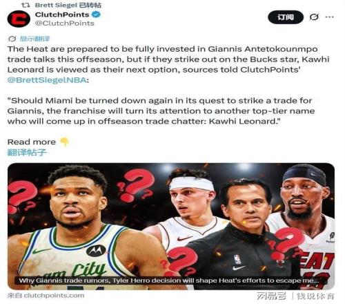 对迈阿密热火而言,2026年休赛期是决定球队未来多年走向的关键节点。连续四年无缘季后赛的尴尬战绩,让管理层没有退路,必须拿出果断的重建行动,而引进字母哥、莱昂纳德这类顶级巨星,是快速提升球队实力、重返争冠行列的最直接途径。球迷们也纷纷期待,“神算子”帕特·莱利能否再次施展操盘能力,为热火带回下一位超级巨星,让这支老牌劲旅重新站上联盟争冠舞台。