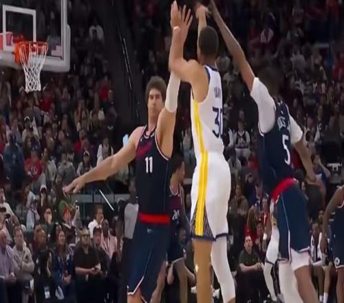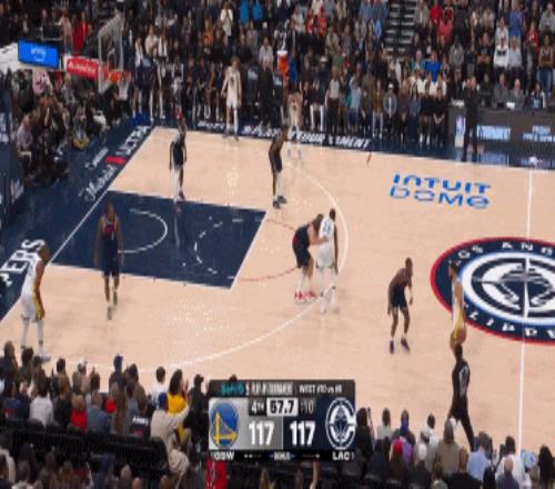快船用罚球追平,但扭头又是库里命中了撤步三分球...
