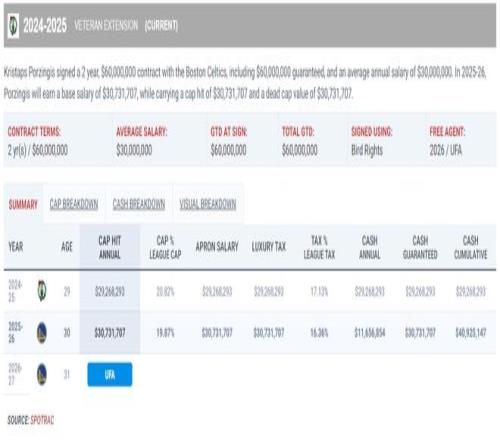 本赛季是波尔津吉斯两年6000万合同的最后一年,今夏勇士将与他谈续约,30岁的他勇士应该给什么级别的合同呢?