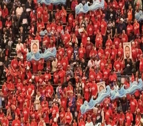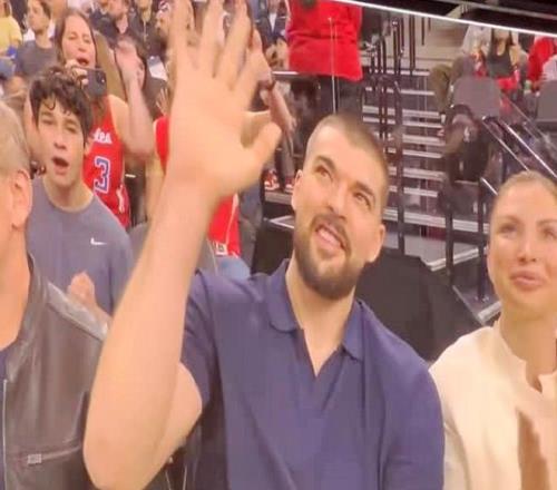 快船旧将祖巴茨在场边观战,获得现场球迷的掌声和欢呼!