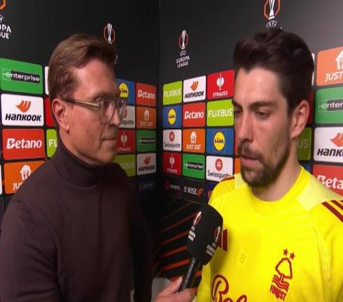 在主场1-0战胜波尔图、以总比分2-1晋级欧联四强后,诺丁汉森林门将奥尔特加接受了采访。