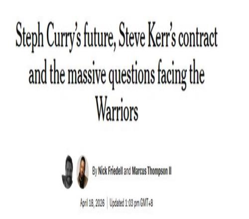 库里并未明确退役时间表,但他近期承认:生涯终点,已近在眼前。往后的赛季,库里状态会两极分化——