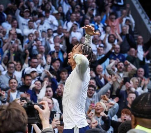下半场,哈维-西蒙斯在第77分钟打进一记世界波,帮助热刺再度取得领先,在进球后,哈维-西蒙斯兴奋地脱衣庆祝,结果在下半场补时阶段,丹索失误被抢断,吕特打进绝平球。