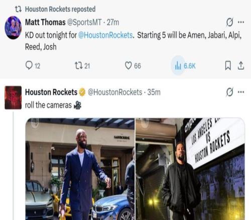 由于事发突然,外界最初都在猜测这是火箭队的烟雾弹,几位名记也在跟进报道中曝出火箭队乐观认为杜兰特可以出战G1。