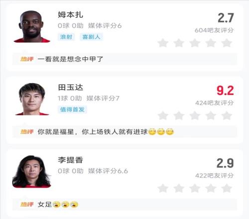 可见,李金羽对锋线球员的表现也是极度不满,而这场1-3的比赛,也是犹如一块试金石,揪出了辽宁铁人队内三名水货球员,首先就是姆本扎,他在本场比赛出战59分钟,一共有7脚射门4次射正球门方向,却没有取得一粒进球,这也让姆本扎成为全场最差,仅仅得到2.7分。