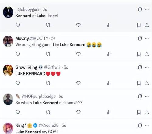 比赛还没打完,卢克-肯纳德已经登上了全美第二热搜。