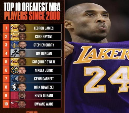 2000年后NBA最强十人排位:詹姆斯熬过科比夺榜首库里反超奥尼尔