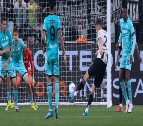 第57分钟,麦肯尼右路传中,凯夫伦-图拉姆头球破门!尤文2-0