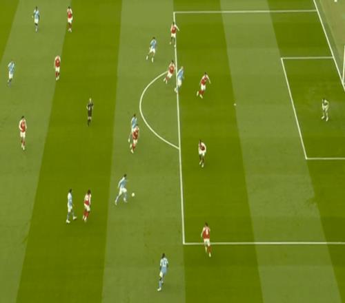 下半场回来后,胡桑诺夫和哈兰德禁区内的连续两脚射门,先被挡出随后又击中立柱!一直到了第61分钟,阿森纳前场不断的攻势,越演愈烈!厄德高横传,埃泽一拨一射,重重击中立柱弹出!曼城逃过一劫。