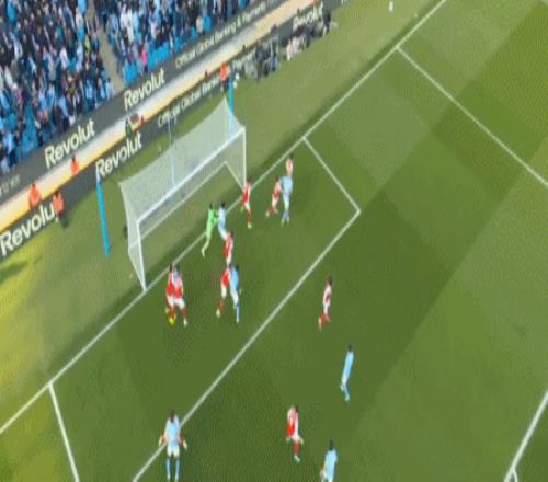 第4分钟,拉亚后场停球力量太大,差一点被哈兰德断走,阿森纳险些开场就丢球。
