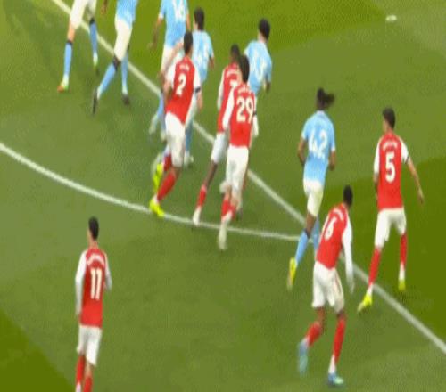 第5分钟,多库左路强行爆破低平球传中,哈兰德脚后跟射门被加布里埃尔挡出,谢尔基小角度补射,又击中加布里埃尔的手臂,随后被立柱挡出,阿森纳逃过一劫。