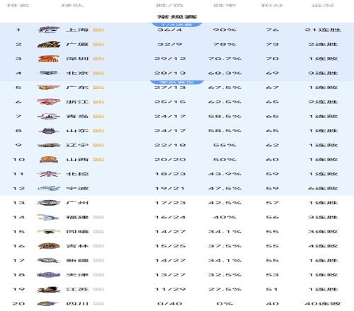 随着山东终结深圳15连胜广厦翻盘北控北京逆转青岛CBA排名大变