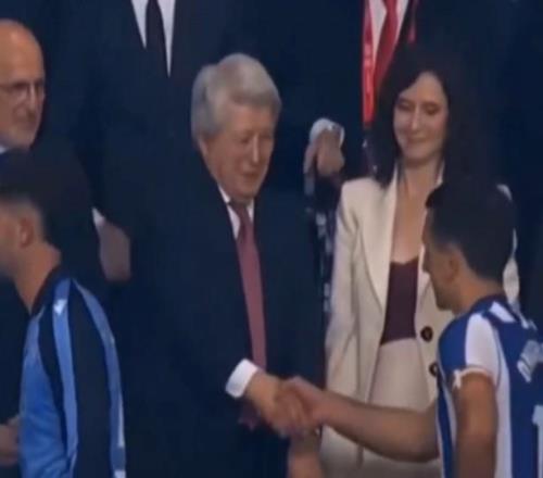 皇家社会队长奥亚萨瓦尔在走上贵宾席时,直接无视了马德里自治区主席伊莎贝尔-迪亚斯-阿尤索,直接和马德里竞技主席恩里克-塞雷佐开始握手。