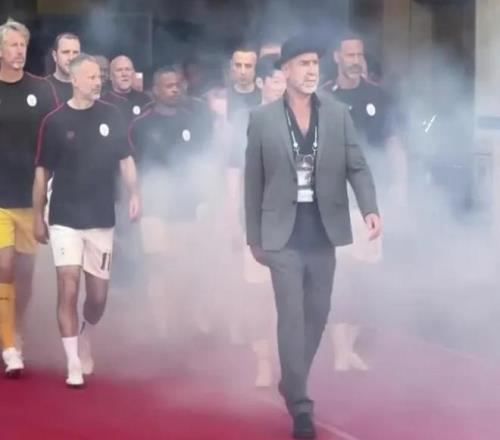 曼联传奇球员在韩进行友谊赛,坎通纳出场时西装革履派头十足