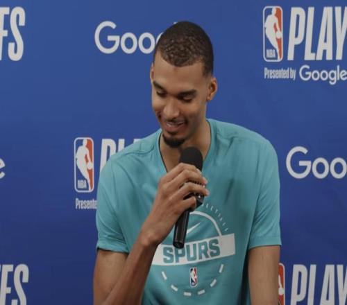 北京时间4月19日,NBA季后赛首轮的争夺继续进行,在一组西部对决中,马刺主场111-98战胜开拓者,总比分1-0领先。赛后,马刺队中锋文班亚马接受了媒体的采访。