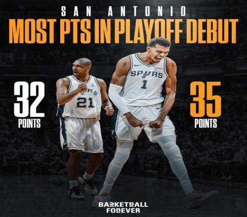 第2、文班亚马成为马刺队史季后赛首秀得分最高的球员!此前纪录保持者是邓肯,他的季后赛首秀砍下了32分。