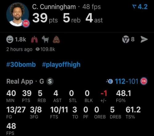 活塞全队,除了坎宁安仍在稳定输出
