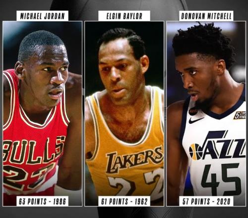 在米切尔历史第一的9次之后,排在他后面的,分别是7次的乔丹,6次的科比和张伯伦。能够和这一帮历史神级球员同进一份榜单,足以看出米切尔的能力。