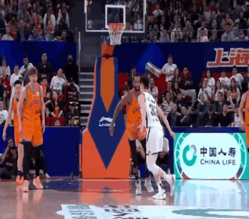 本节比赛结束前,弗格顶着防守压哨三分命中,上海86-63领先。