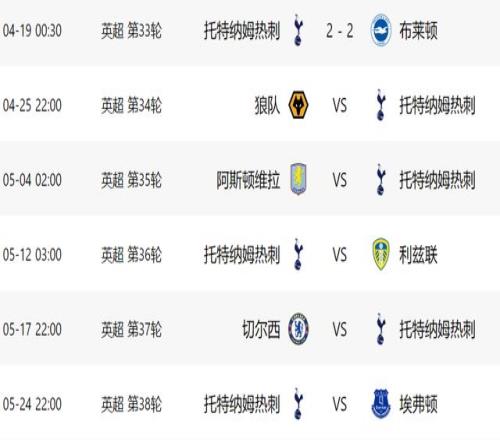 好在热刺现在还有希望逆天改命,根据赛程安排,最后5轮比赛,热刺的对手分别是狼队、维拉、利兹联、切尔西和埃弗顿。其中客场对阵维拉和切尔西,热刺恐怕很难拿分,但是另外3场比赛,热刺要是能正常发挥的话,有机会全取9分。特别是下一轮比赛,热刺做客已经提前降级的狼队,如果都拿不到3分,热刺就别指望保级了。