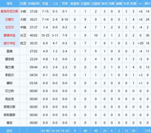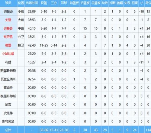 本场掘金两大核心全部失准,约基奇投篮20中8收获24分15板8助准三双;穆雷投篮25中11贡献30分7板7助。