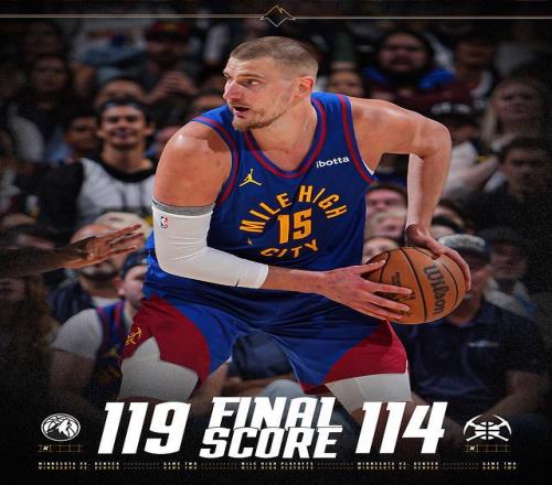 在系列赛首场比赛,掘金116-105战胜森林狼,当时约基奇25分13篮板11助攻贡献三双数据,穆雷也是轰下30分5篮板7助攻,完胜爱德华兹22分9篮板7助攻。