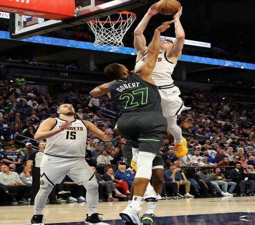 下半场,双方继续展开胶着拉锯战,约基奇里突外投连砍12分助掘金重新建立领先,三节掘金领先3分,末节布鲁斯· 布朗连中三分,但纳兹·里德接连内线取分回应,掘金保持微弱领先,约基奇连续进攻不中,森林狼再反超,戈登关键三分后迪文岑佐三分再进,布劳恩关键两罚中一,迪文岑佐反击暴扣杀死比赛,最终森林狼119-114完成19分大逆转系列赛1-1平。