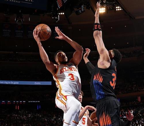 从落后14分到1分险胜,老鹰队以下克上爆冷完成末节惊天大逆转,他们又一次在麦迪逊花园球馆这创造奇迹,这里真是亚特兰大人的福地啊!篮板抢不赢(36-47输11个),前场篮板拼不过(6-14输了8个),三分火力也比不过(老鹰30中9,尼克斯34中11),老鹰队却不抛弃不放弃,三军用命拧成一股绳,疯狂撕咬围剿布伦森,靠着防守和反击摧毁了尼克斯队的防线!老鹰队在客场偷走一场胜利扳平系列赛大比分,赛季中期那两笔交易的含金量显著提升,库明加和CJ是逆转绝对功臣!