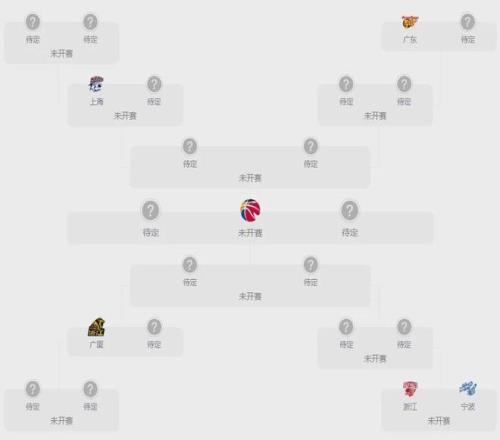 分别是上半区第一名的上海已经直通8强在主场等待第8名和第9名胜者前来挑战;下半区第二名的广厦已经直通8强在主场等待第7名和10名胜者前来挑战;