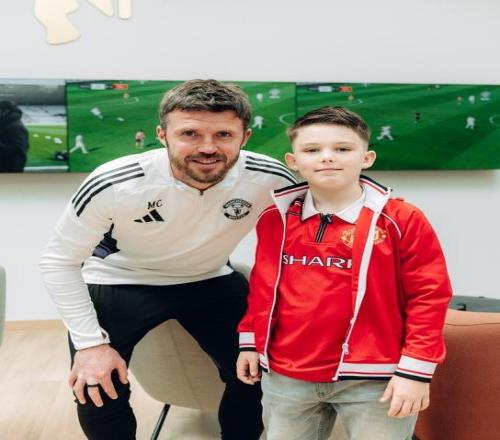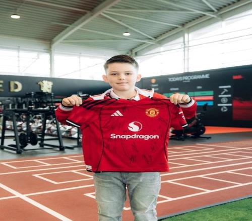 曼市一8岁慈善网红受卡里克邀请探访卡灵顿,获赠曼联球衣