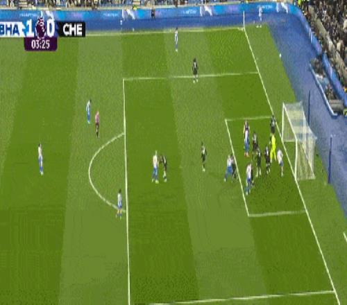 第3分钟,布莱顿战术角球进攻,卡迪奥卢后点包抄推射破门,布莱顿1-0切尔西。