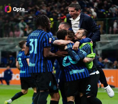 意大利杯半决赛次回合,国际米兰3-2逆转击败科莫晋级,国米队史第16次闯进意大利杯决赛,仅次于尤文和罗马。