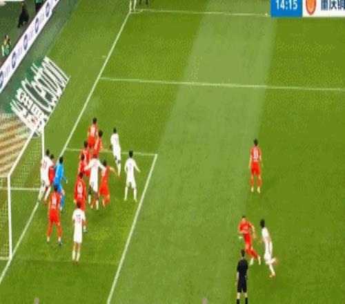第45分钟,颜骏凌出击扑空,陈纯新后点推射破门,2比0!