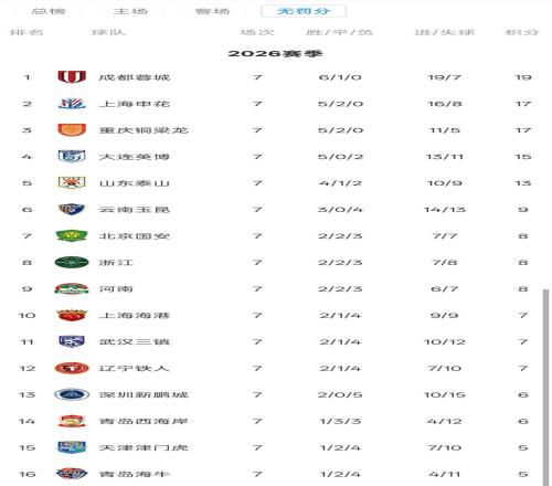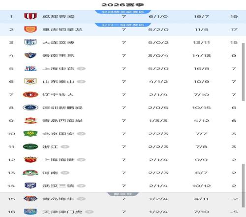 2026赛季中超联赛第7轮比赛已经结束。在无扣分版的积分榜中,3支球队7轮不败,上海申花高居第二,而第7与垫底球队则仅有3分之差。