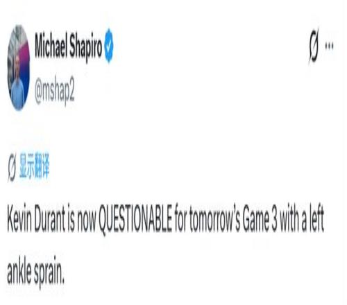杜兰特又添新伤!因左踝扭伤出战G3成疑火箭02落后陷重大危机