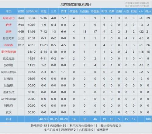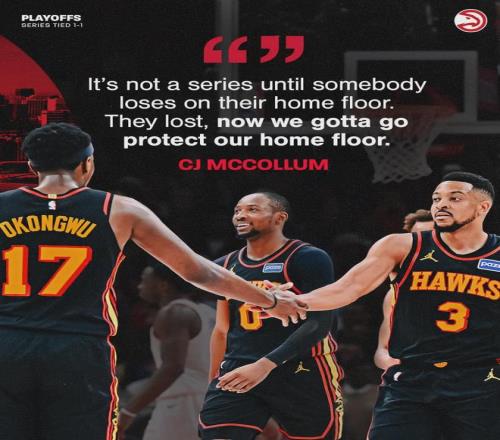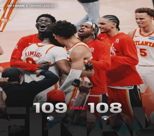 北京时间4月24日,NBA季后赛首轮G3,老鹰主场109-108险胜尼克斯。两队各有三人得分20+:约翰逊24分10板8助、麦科勒姆23分5板2断2帽、库明加21分4板;阿努诺比29分9板3帽、布伦森26分3板4助、唐斯21分17板4助2断2帽。
