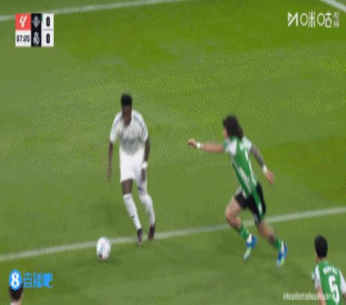 第17分钟,贝蒂斯门将开球被顶回,巴尔韦德得球远距离打出贴地箭被门将扑出,门前维尼修斯跟进补射入网!皇马1-0领先↓