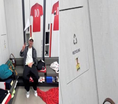 体育播报4月25日宣 一张麦卡利斯特的照片近日在网上疯传,起因是有眼尖的球迷发现背景中,更衣室的垃圾回收箱上贴着前利物浦前锋路易斯·迪亚斯的贴纸。